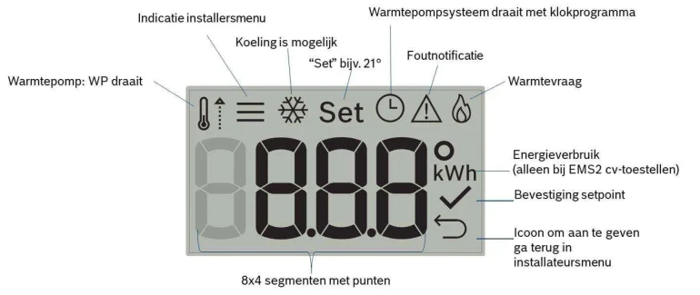 Voor eindgebruiker en installateur gelden de volgende bedien- en weergavemogelijkheden: