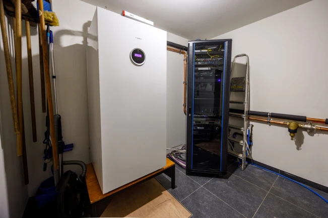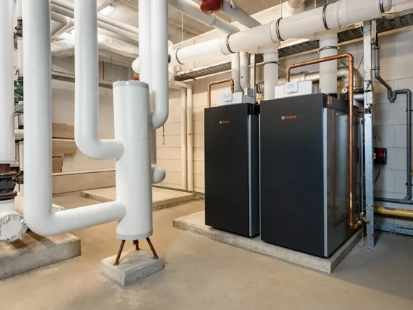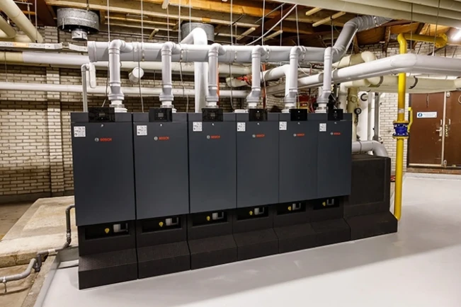 Als aanvulling én back-up zijn drie krachtige Bosch Uni Condens 8000 F verwarmingsketels geplaatst.