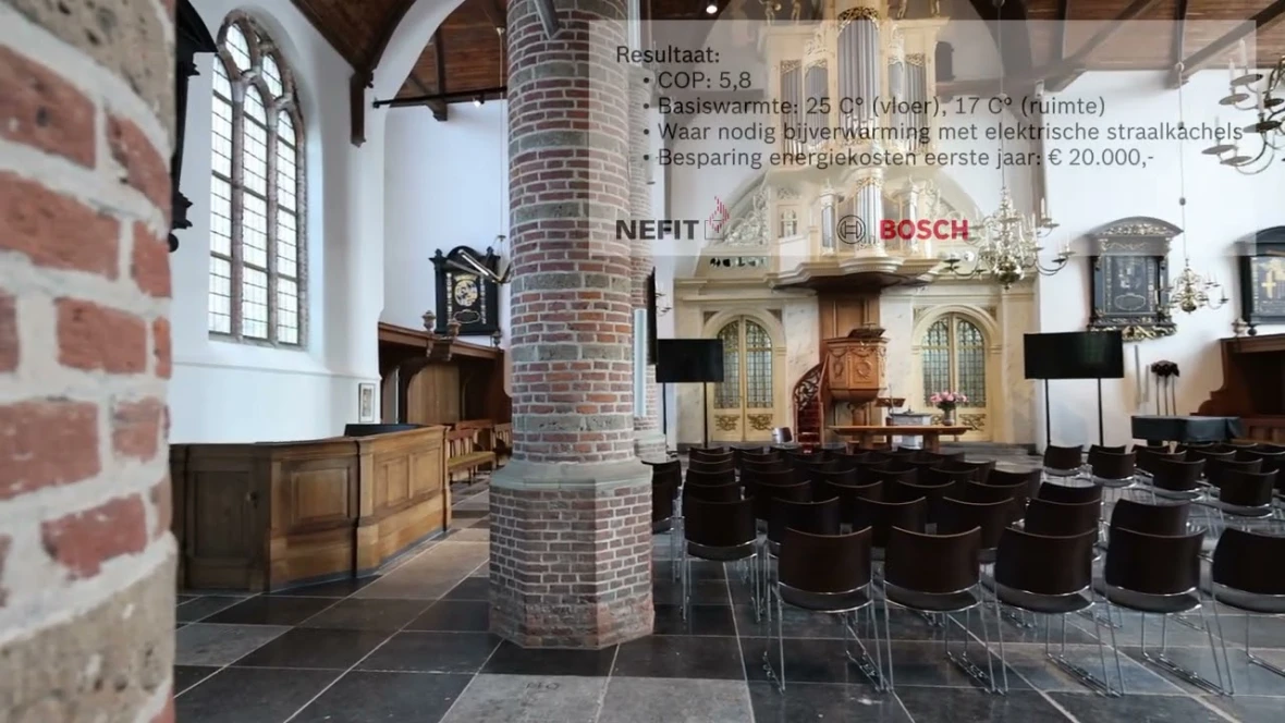 ‘De bronboorder was uiteraard voor het ondergrondse deel BRL-gecertificeerd. Zelf hebben we geen BRL-certificering voor de aanleg en het beheer van het bovengrondse deel van de installatie. Daarom hebben we dankbaar gebruik gemaakt van de BRL-ondersteuning van Nefit Bosch. Met een speciale tool doorloop je alle verplichte stappen en ben je verzekerd dat je aan alle BRL-eisen voldoet. Ook de inbedrijfstelling is door een technisch specialist van Bosch gedaan. Zonder die volledige ontzorging hadden we dit project nooit kunnen uitvoeren.’ De resultaten mogen er inmiddels zijn. ‘De Bosch Compress 7000 LW bodemwarmtepomp haalt hier een COP van 5,8 en dat is een enorm hoog rendement’, besluit Gijsbert. ‘In het eerste jaar verwachten we al een besparing van 20.000 euro op de stookkosten. En dat is nodig ook. Want de betaalbaarheid van warmte is een belangrijke factor in de toekomstbestendigheid van historische kerkgebouwen.’