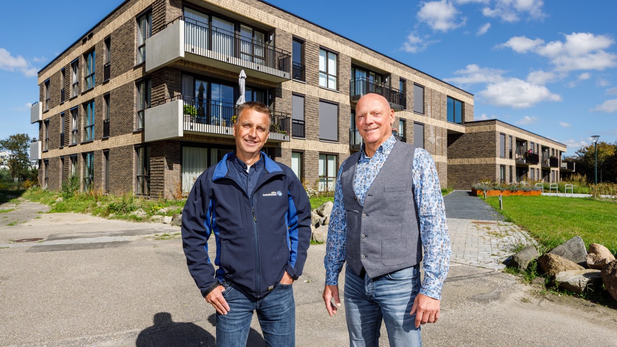 ‘De eerste fase is inmiddels gereed’, vertelt projectleider Jan Dijkman van Otte Installaties verheugd. ‘De 26 woningen in dit fraaie, nieuwbouwcomplex worden inmiddels door huurders bewoond. ‘In elke woning draait een bodemwarmtepomp met vloerverwarming. Ze gebruiken de warmte en koude die wordt opgehaald uit een collectieve bodembron. Deze bestaat uit 14 geboorde bodemlussen van 160 meter diep.’