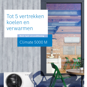 De multi split airco bestaat uit een buitenunit waaraan je meerdere binnenunits koppelt, vandaar de aanduiding ‘’multi’’. Een multi split airco met twee binnenunits gekoppeld aan de buitenunit wordt ook wel een duo split airco genoemd. Ook een multi split airco met meer dan twee binnenunits is mogelijk, maar je kunt niet een onbeperkt aantal binnenunits aan de buitenunit koppelen. Met de Nefit Bosch Climate 5000 multi split buitenunit kunnen maximaal vijf binnenunits gekoppeld worden.