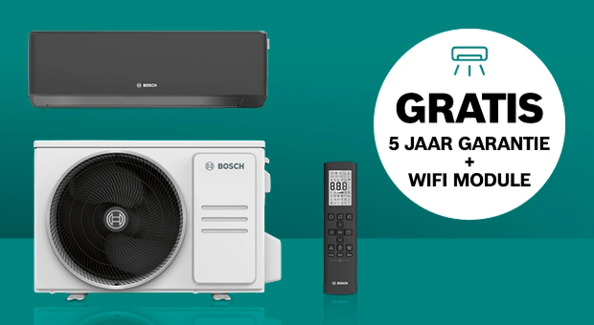 - Tijdelijk bij afname van Bosch Climate 3000i en 6000i-binnenunit gratis Bosch WiFi gateway G10-3 (t.w.v. € 107,-).